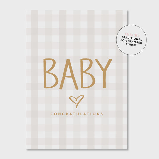 Baby Gingham - Beige - Greeting Card