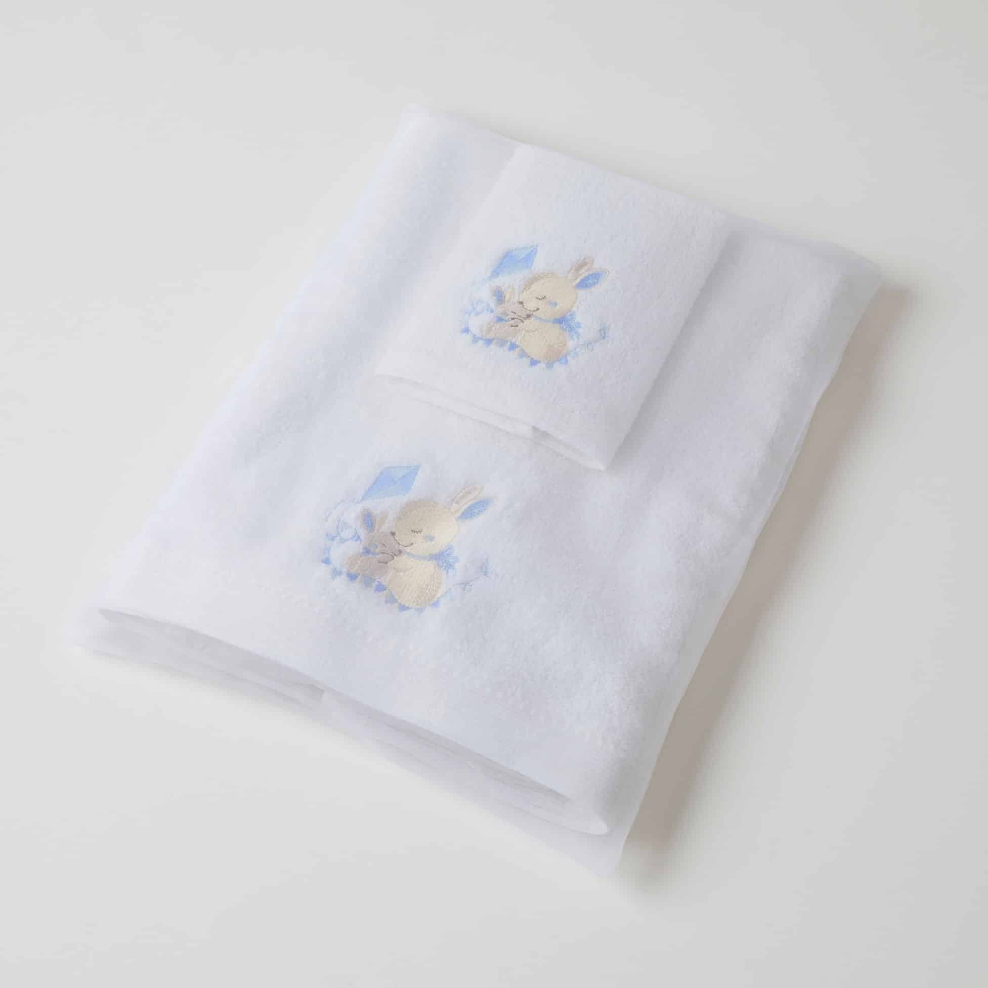 Blue Bunny | Bath Towel & Face Washer In Organza Bag