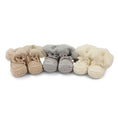 Hand crocheted Cotton baby bootees with ankle tie and faux fur cuff. Delivered in a white lined clear box.