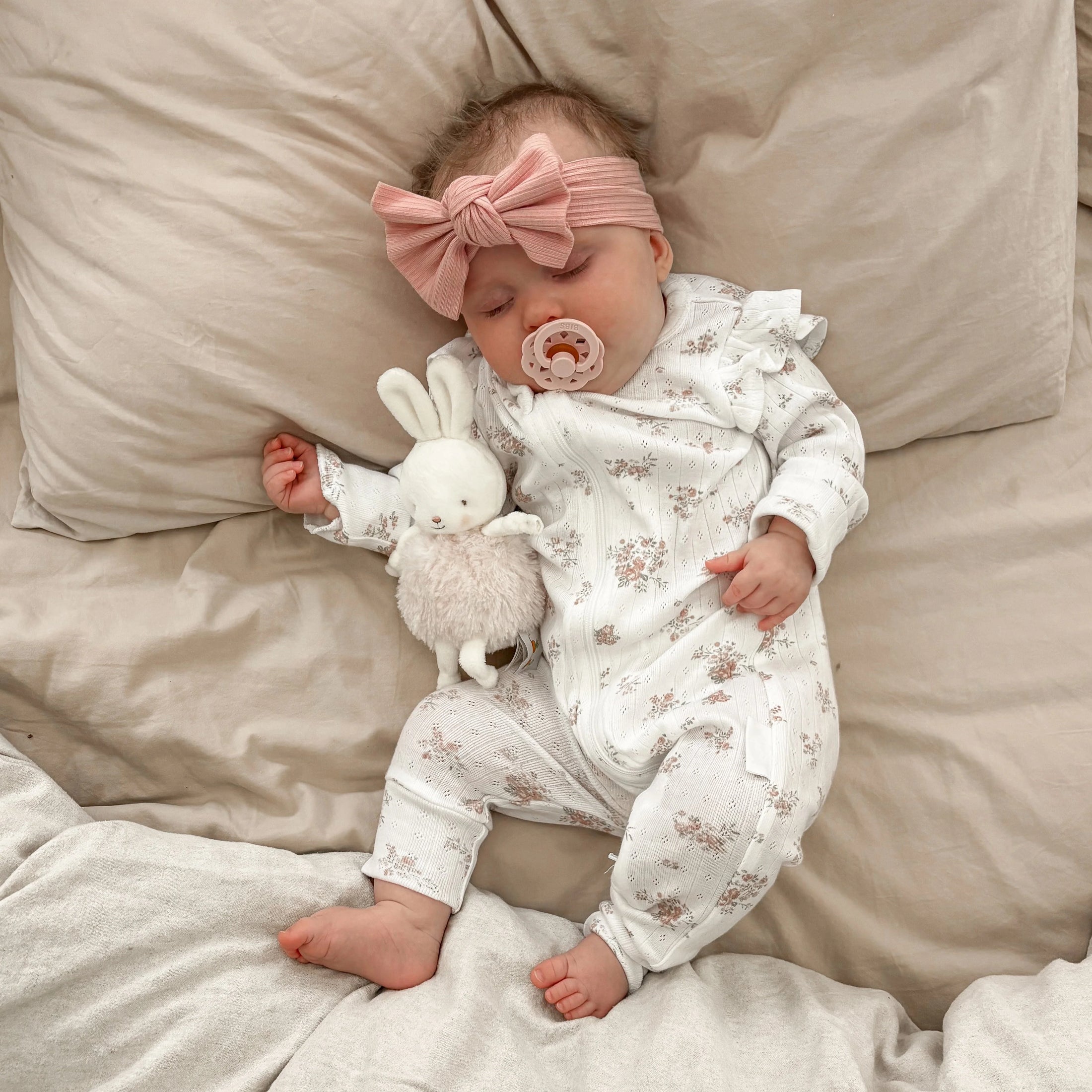 A gorgeous subtle floral print with shoulder ruffles, our zip romper will take your precious little one from garden plays to sweet dreams in style and warmth. Designed for comfort, our zip rompers feature protective backing and zip covers to ensure no snags or irritation and a 2-way YKK zipper for convenient and fuss-free changes.
