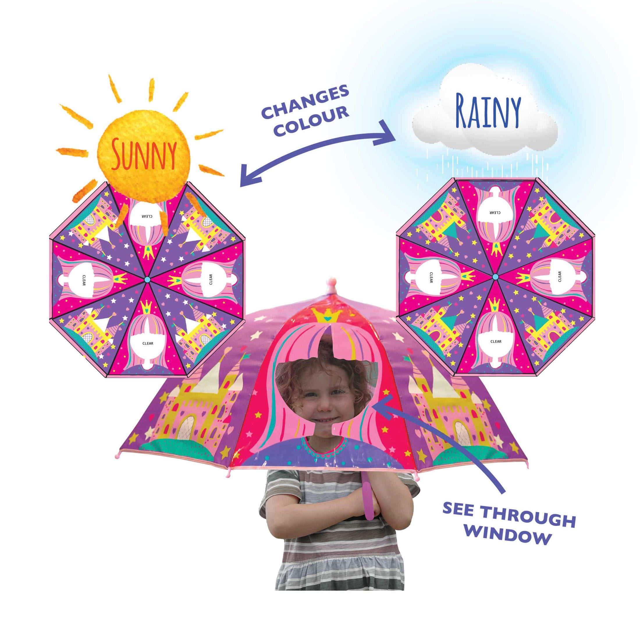 Create magic with the colour changing umbrella! Watch the Princess change colour when it rains and back again when sunny!