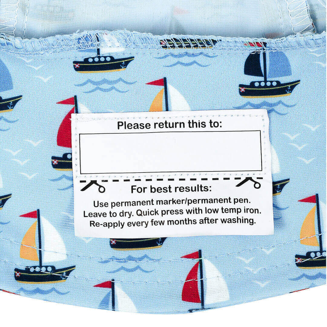 For little lovers of the deep blue sea, these cute sailboards with white, blue, yellow and red sails need a Marine or Slate rash vest and striped swim shorts to complete the look! Available in Legionnaire, Classic Bucket and Wet Bag.